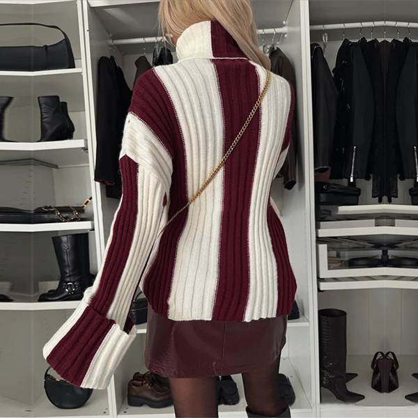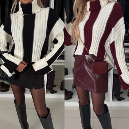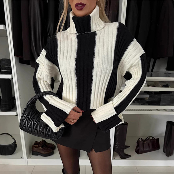 Fashion Contrast Color Turtleneck Long Sleeve Sweater