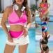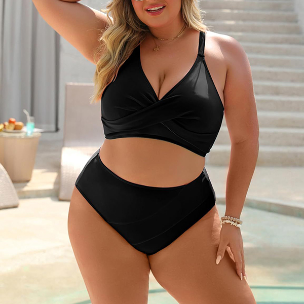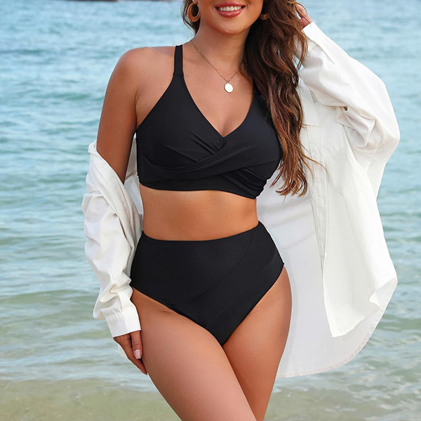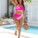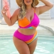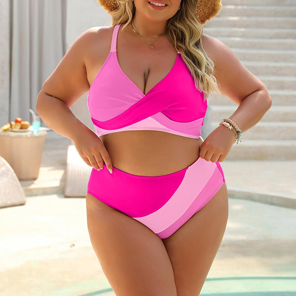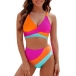 Fashion Contrast Color Two-piece Bikini Set Consist of Self-tie Swimming Top and High-rise Swimming Bottom