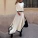 Fashion Contrast Color Two-piece Set Consist of Crop Top and Irregular Hemline Skirt