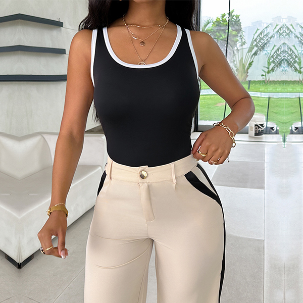 Fashion Contrast Color Two-piece Set Consist of Tank Top and Straight-cut Pants