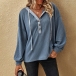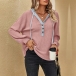 Fashion Contrast Color V-neck Long Sleeve Drawstring Hooded Texture Sweatshirt