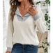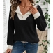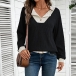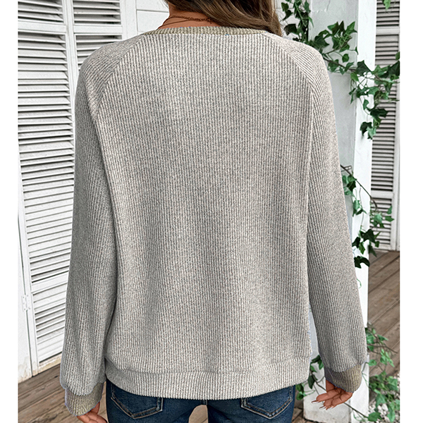 Fashion Contrast Color V-neck Long Sleeve Shirt