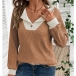This shirt features elegant V-neck styling with dynamic contrast color detailing and classic long sleeves for contemporary versatile appeal. Perfect for daily wear.