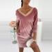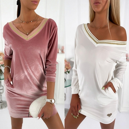 This classic and timeless dress can easily arouse your attention. It will be the first choice in autumn and winter. With this piece, you you can easily express your beauty and charm. Designed with contrast color and V-neck, you will be looked more elegant and charming in it. This piece is worth having a place in your wardrobe!