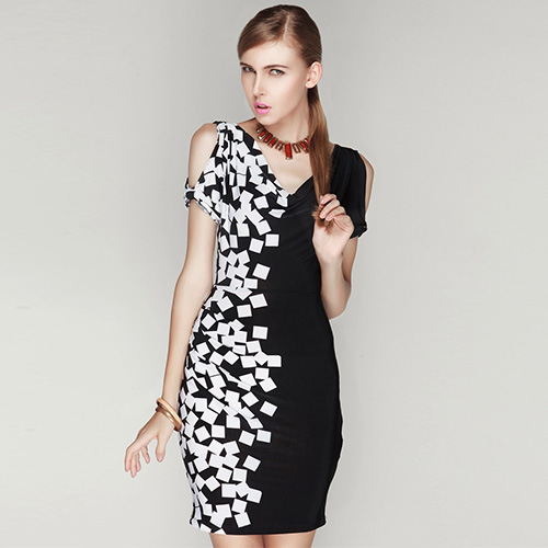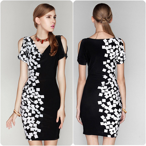 This dress is filled with elegant,stylish,sexy and chic elements all in one. It features contrast color style,