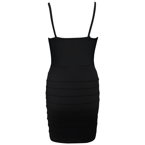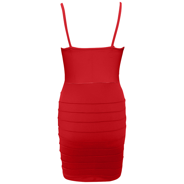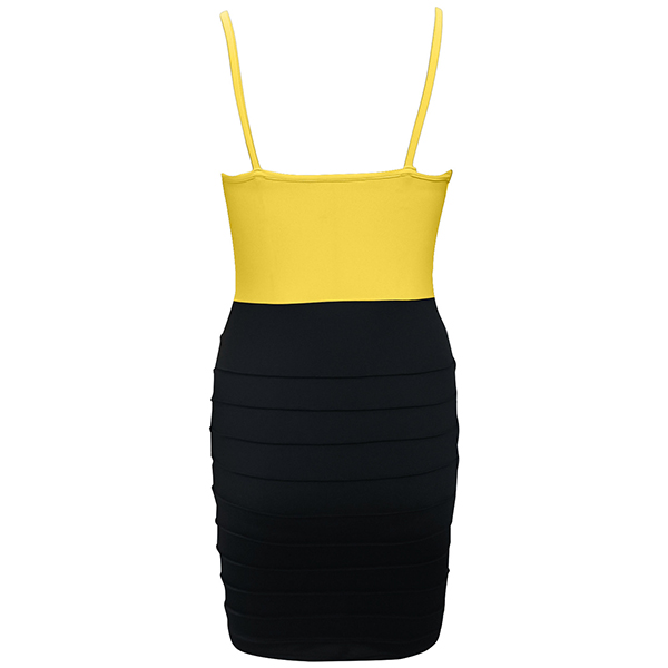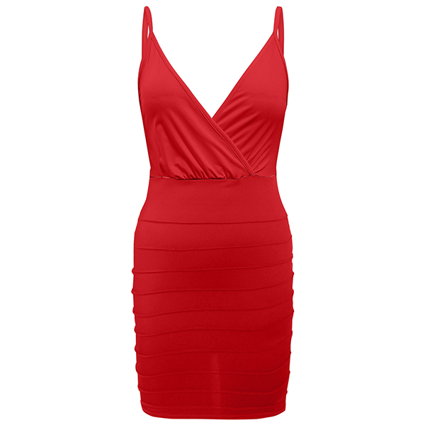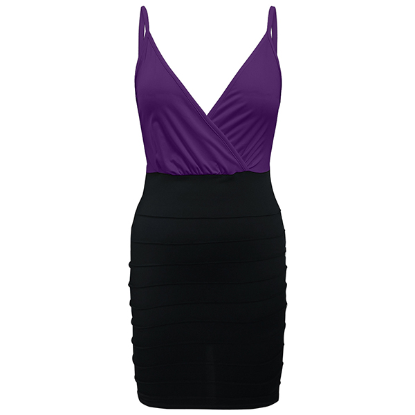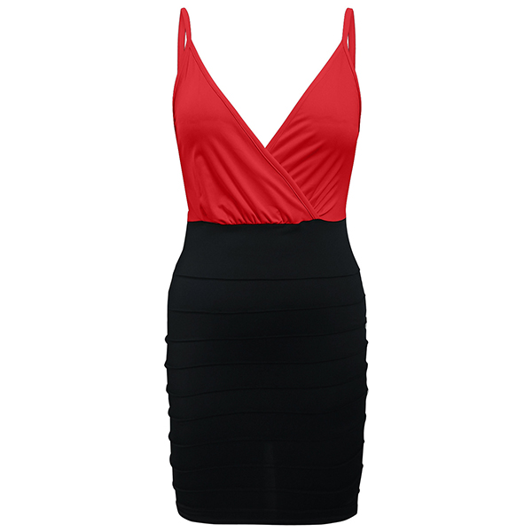 Fashion Contrast Color V-neck Ruched Bodycon Slip Dress