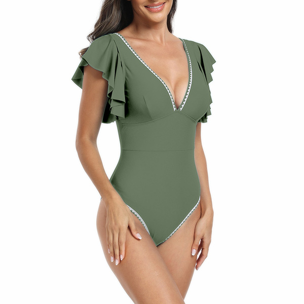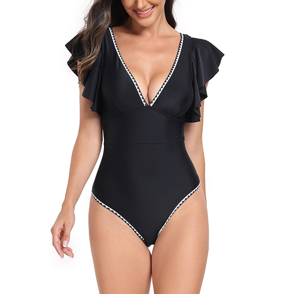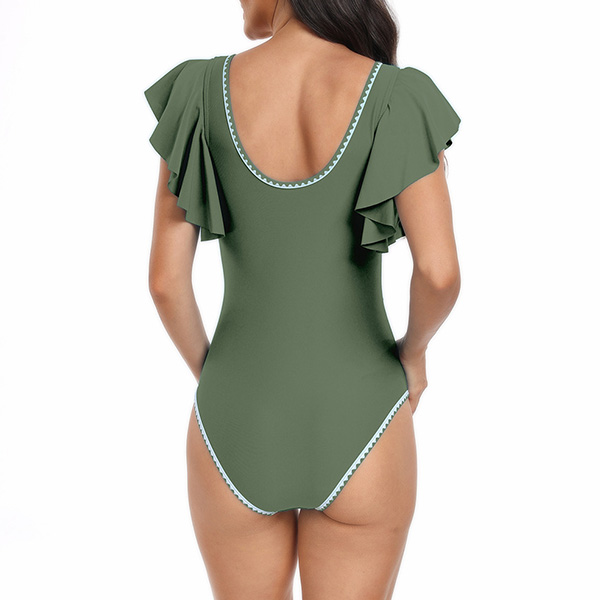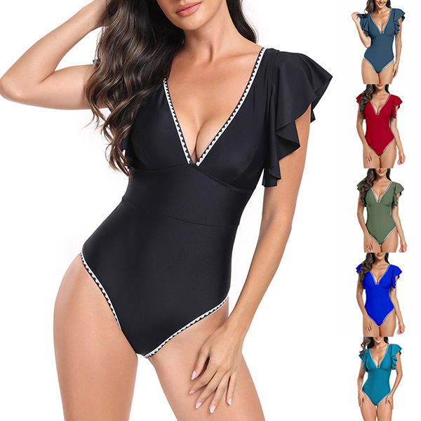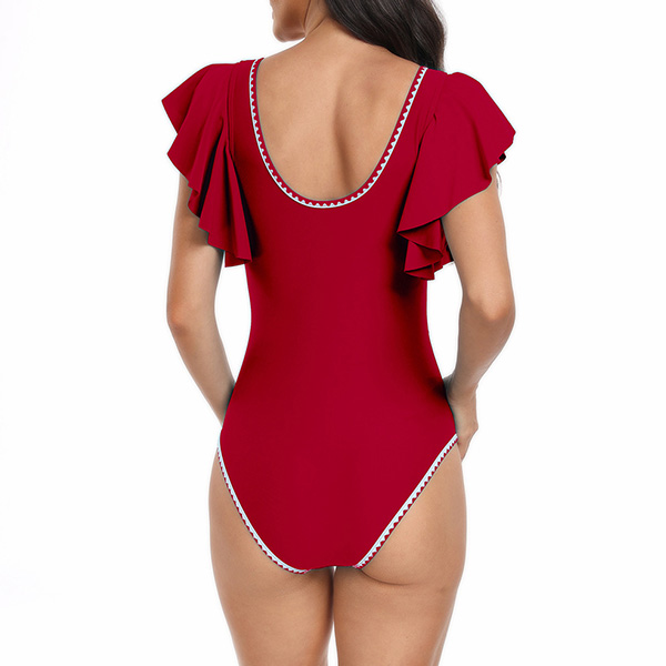 Fashion Contrast Color V-neck Ruffle Sleeveless Monokini