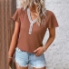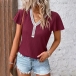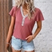 Fashion Contrast Color V-neck Ruffled Short Sleeve Shirt