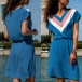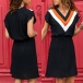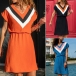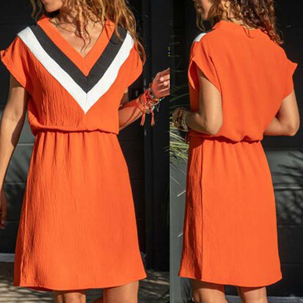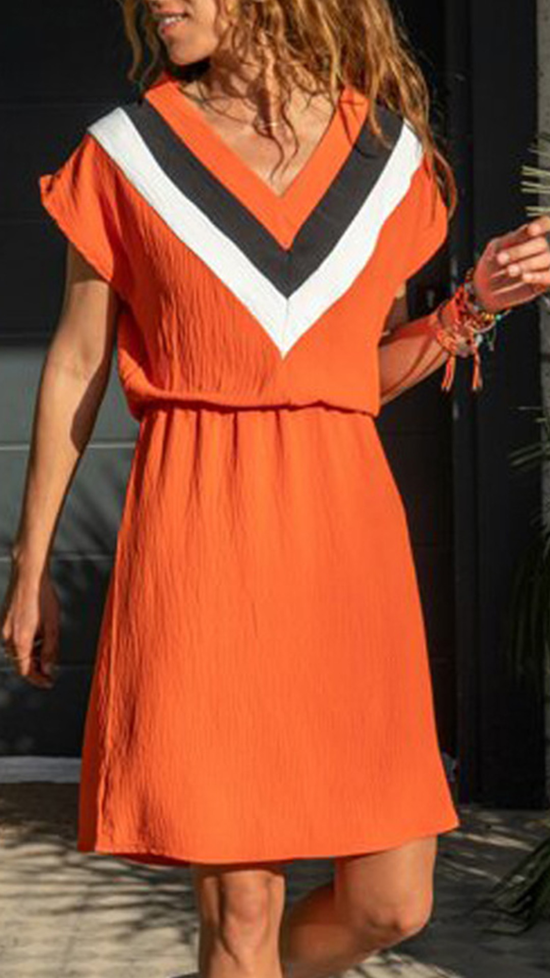 Fashion Contrast Color V-neck Short Sleeve Elastic Waist Dress