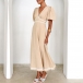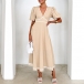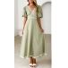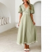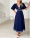 Fashion Contrast Color V-neck Short Sleeve High-rise Midi Dress