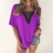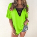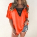 Fashion Contrast Color V-neck Short Sleeve Loose T-shirt