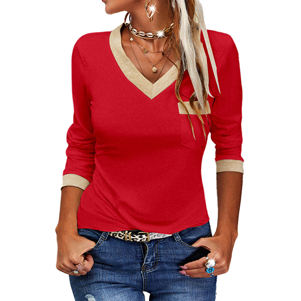 Look at this shirt!The contrast color V-neck detailing adds a vibrant and eye-catching element to the shirt. Wanna have a try?