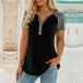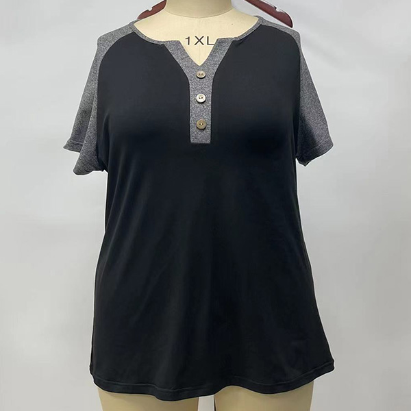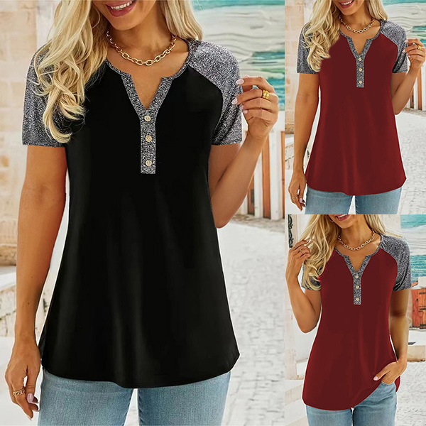 This stylish shirt features a trendy contrast color design, a flattering V-neckline, and short sleeves, combining comfort and fashion in a versatile piece that can be dressed up or down with ease. Perfect for daily wear!