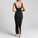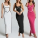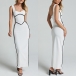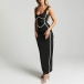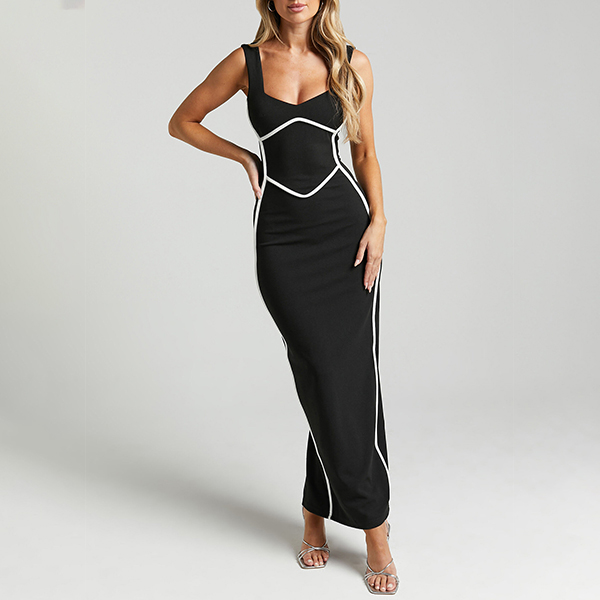 Fashion Contrast Color V-neck Sleeveless Bodycon Maxi Dress