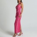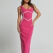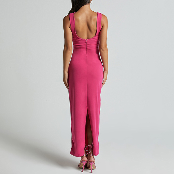 This dress features a striking contrast color design, a flattering V-neckline, sleeveless style, and a bodycon silhouette that extends to a maxi length, creating a sleek and captivating ensemble. Crafted with attention to detail, this dress is made from high-quality fabric that offers both comfort and style.