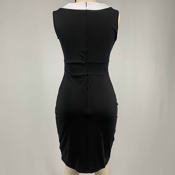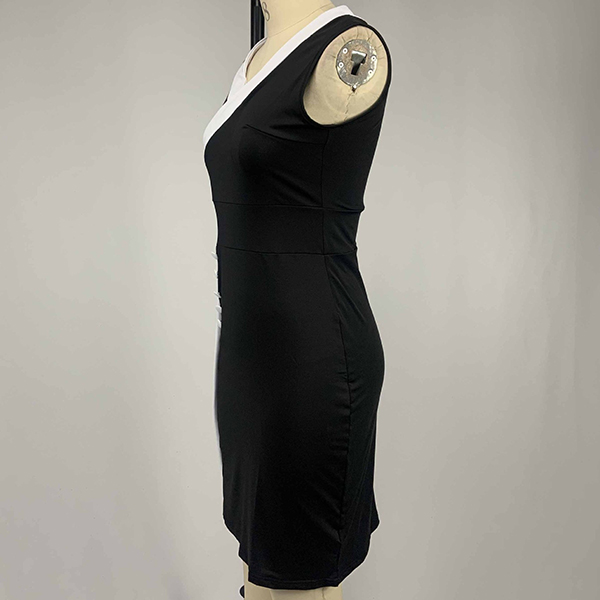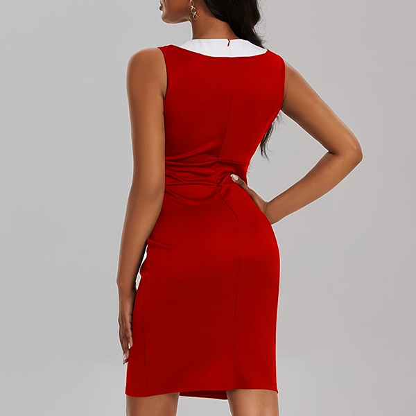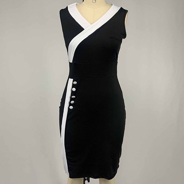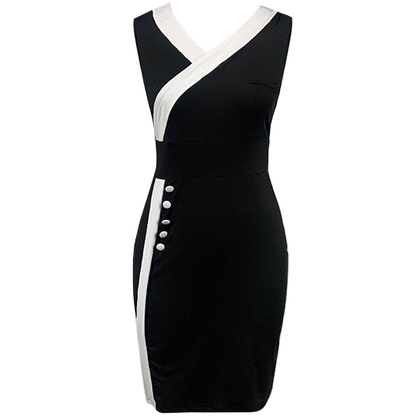 Fashion Contrast Color V-neck Sleeveless Button Bodycon Dress