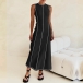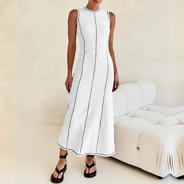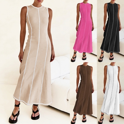 Fashion Contrast Color Vertical Stripe Printed Round Neck Sleeveless Dress