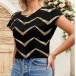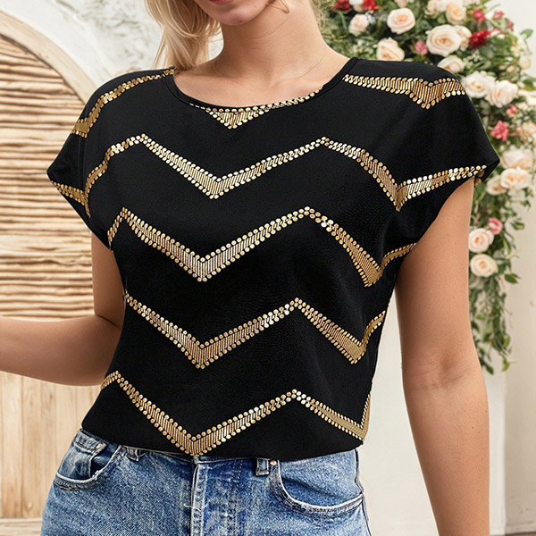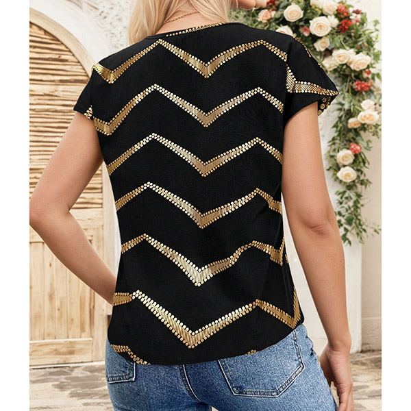 Fashion Contrast Color Wave Printed Crew Neck Short Sleeve Shirt