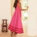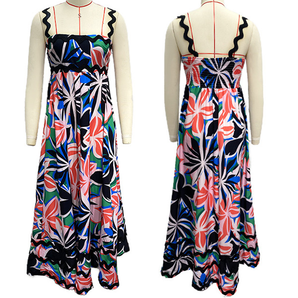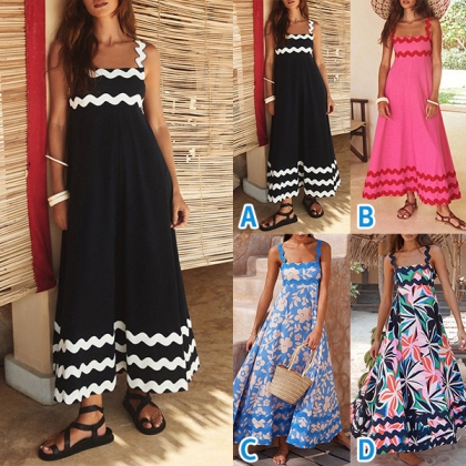 This is a stylish and eye-catching dress that combines a square neckline, cami-style silhouette, and a bold contrast color wave print for a trendy and contemporary look. Multi-colors available.