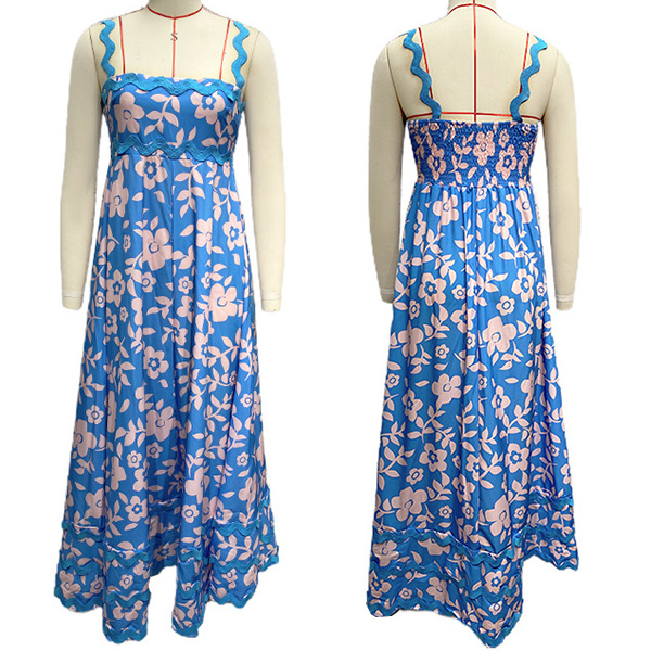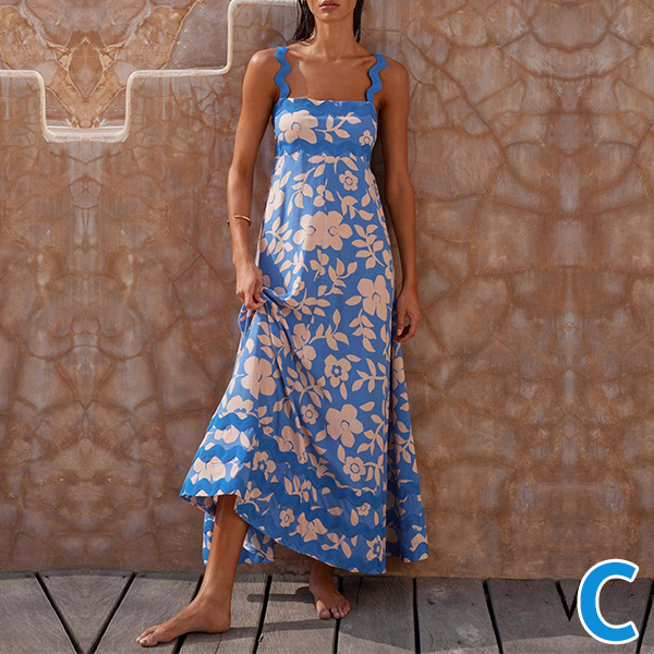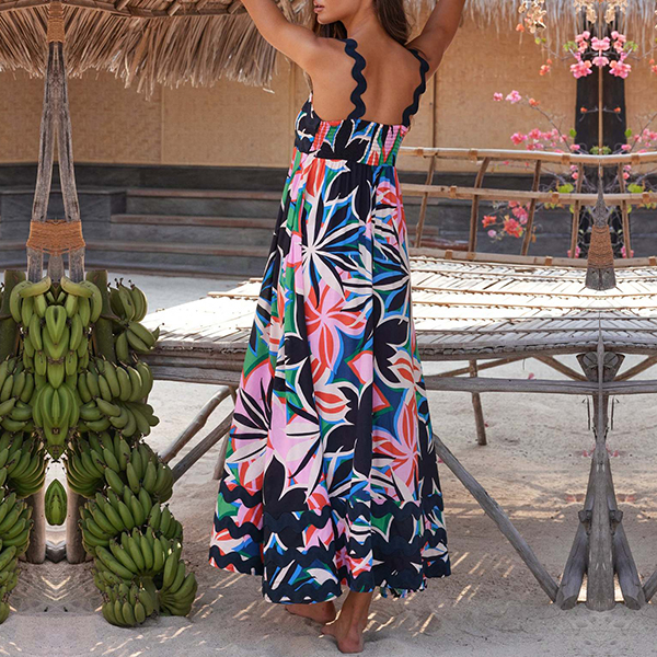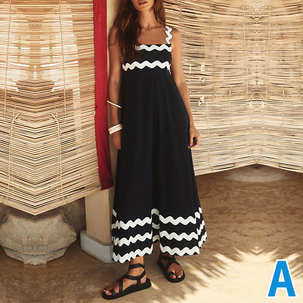 Fashion Contrast Color Wave Printed Square Neck Cami Dress