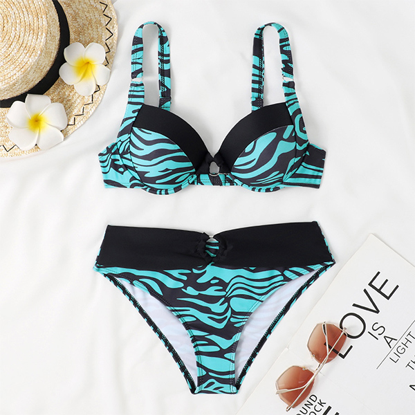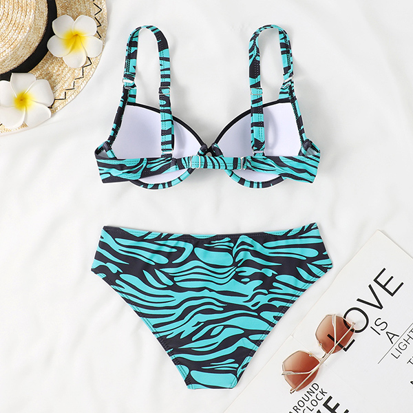 Fashion Contrast Color Zebra Print Two-piece Bikini Set