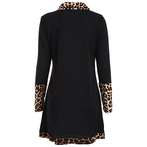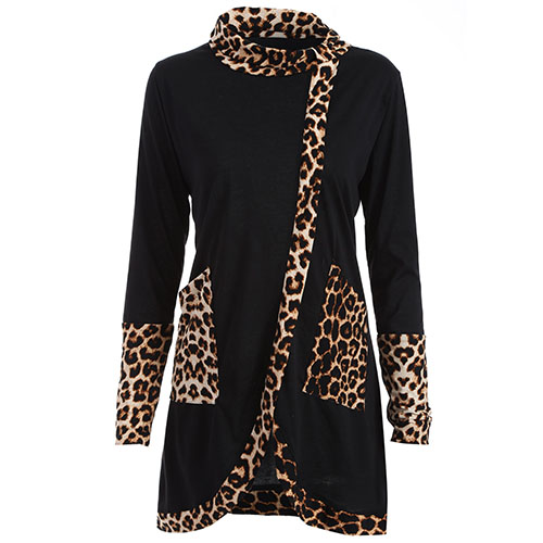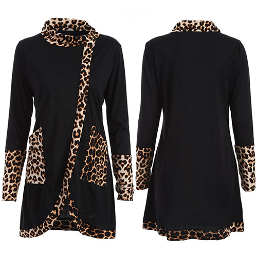 The top features cool and stylish style. It is completed with leopard spliced design and long sleeve