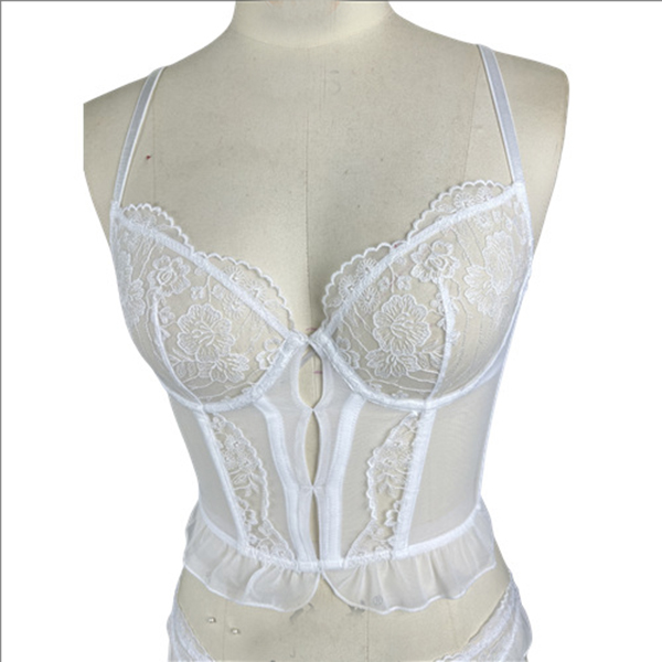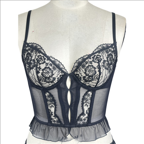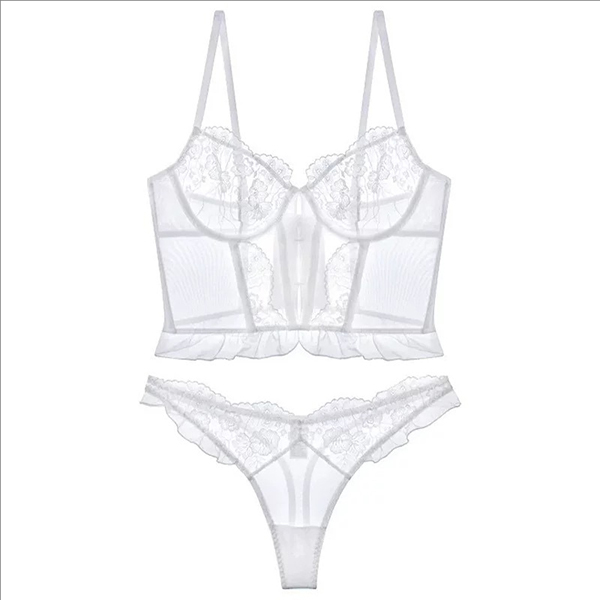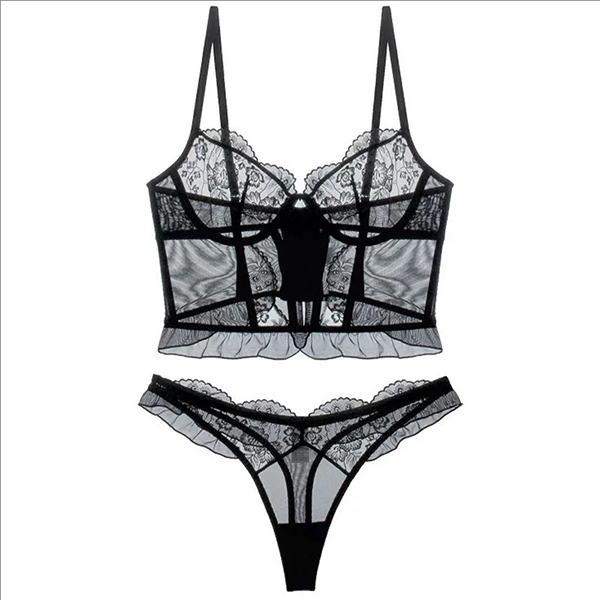 Fashion Corset-style Semi-through Lace Two-piece Lingerie Set