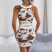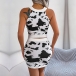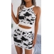Fashion Cow Printed Two-piece Set Consist of Crop Top and Mini Skirt