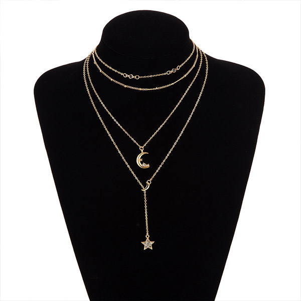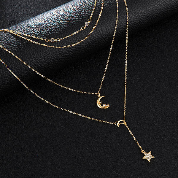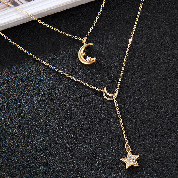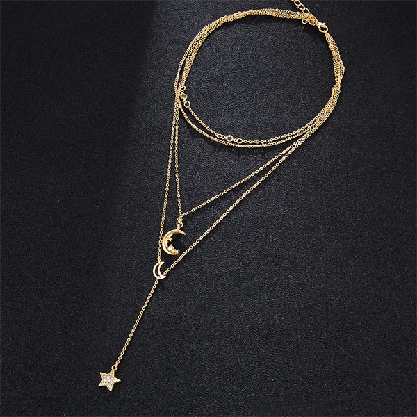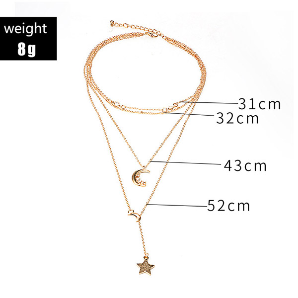 Fashion Crescent Star Pendant Multi-layer Necklace