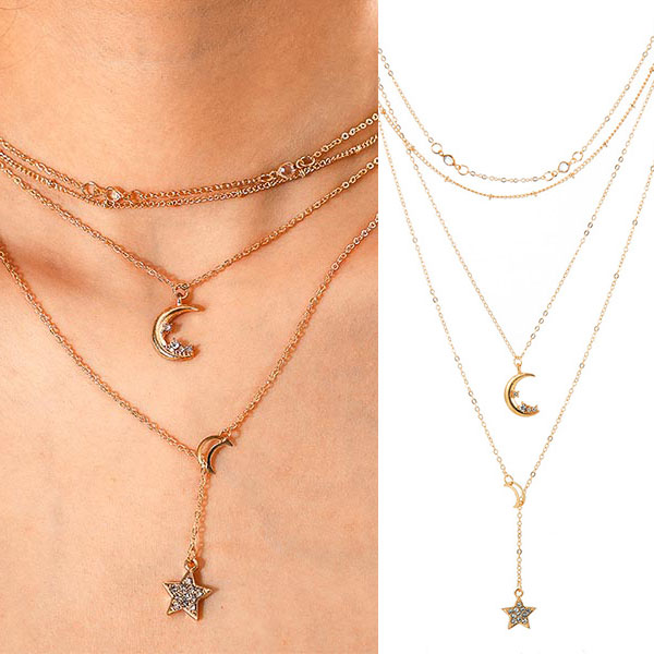 This necklace comes with a classic yet stylish gold tone,which is a good way to embellish your neck. Multi-layer style,decorated with star and crescent pendant,chic yet stylish. You can trust in this little item to boost your entire charm.