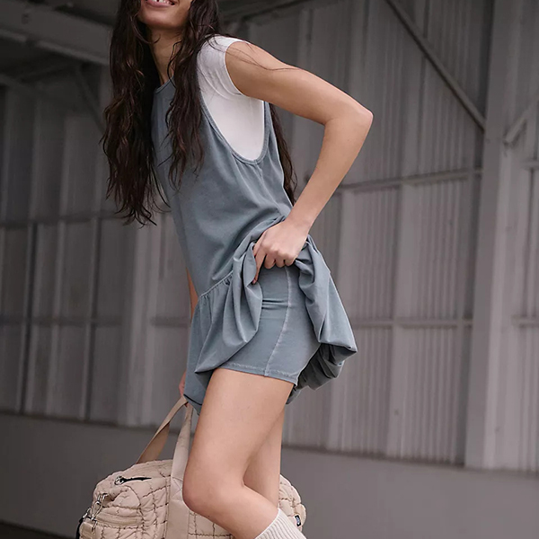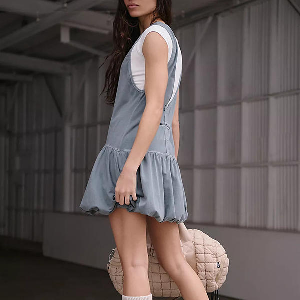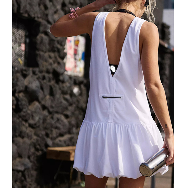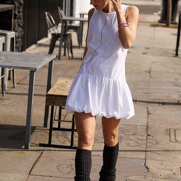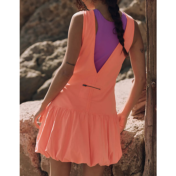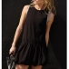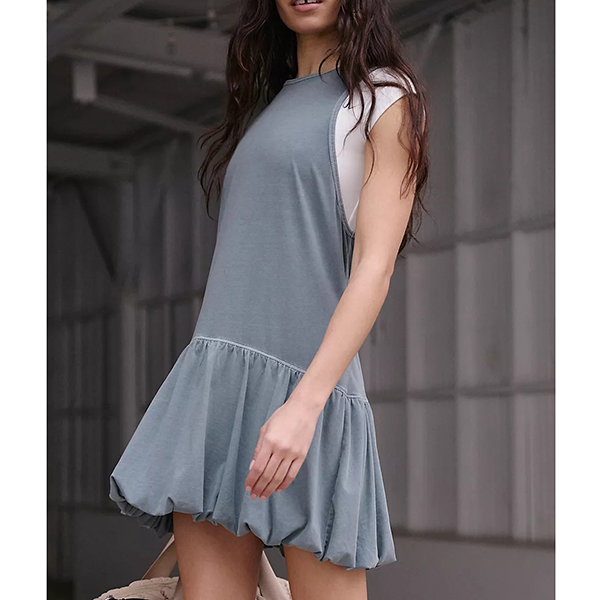 Fashion Crew Neck Backless Ruffle Hemline Mini Dress