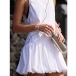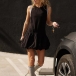 This is a stunning and trendy mini dress that combines chic design elements with a touch of glamour. It features solid color accent, crew neck, sleeveless, backless and ruffle hemline. Dress it with sneakers or sandals for a more casual and trendy ensemble.