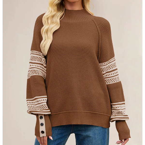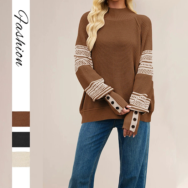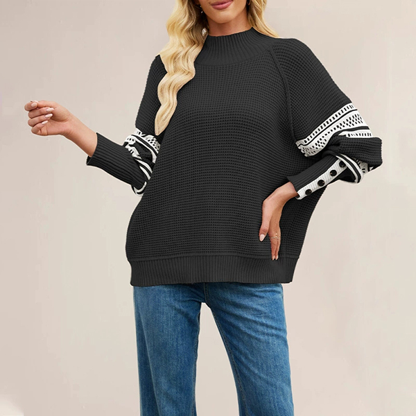 Stay cozy and stylish with this Knitted Sweater. This trendy sweater features a classic crew neckline and batwing long sleeves that offer a relaxed, comfortable fit. The eye-catching contrast color print adds a fun and modern touch, making it perfect for layering over jeans or leggings. Wanna have a try?
