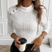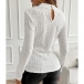 Fashion Crew Neck Button Long Sleeve Hollow Out White Shirt