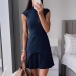 Fashion Crew Neck Cap Sleeve Pleated Hemline Mini Dress