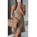This dress features a crew neck, cap sleeves, pleated hemline, and a mini length for a sophisticated and trendy ensemble. Color:Navy Blue,Camel, which one do you like?