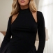 This dress features a chic crew neck, long sleeves for added coverage, a stylish cutout detail on the front , a daring backless design, is it your style?