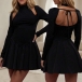 Fashion Crew Neck Cutout Long Sleeve Backless Dress