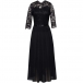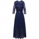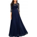 Fashion Crew Neck Elbow Sleeve Lace Spliced Chiffon Maxi Party Dress