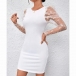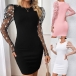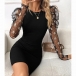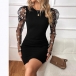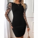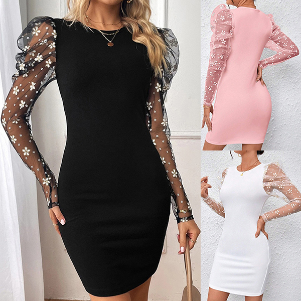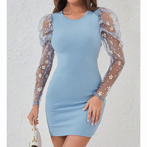 This mini dress features classic crew neck styling with romantic floral gauze splicing along the long sleeve and figure-enhancing bodycon silhouette for contemporary feminine elegance. Wanna have a try?