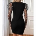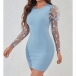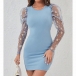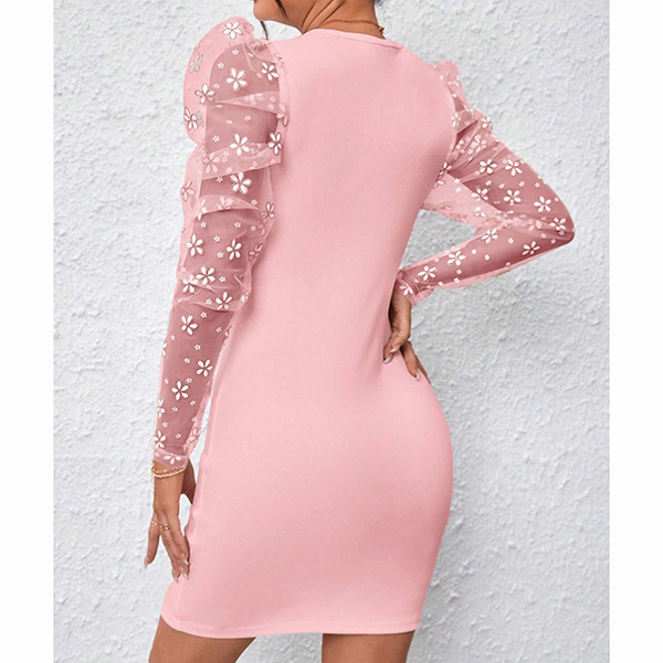 Fashion Crew Neck Floral Gauze Spliced Long Sleeve Bodycon Dress