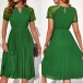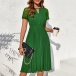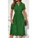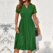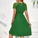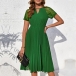 Fashion Crew Neck Front Cutout Lace Spliced Short Sleeve Pleated Dress