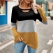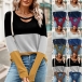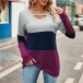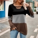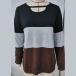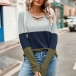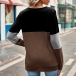 Fashion Crew Neck Front Cutout Long Sleeve Contrast Color Shirt