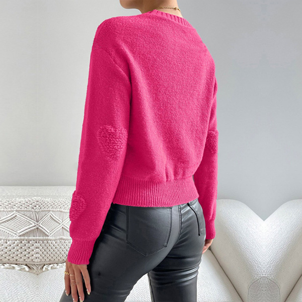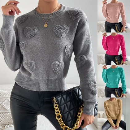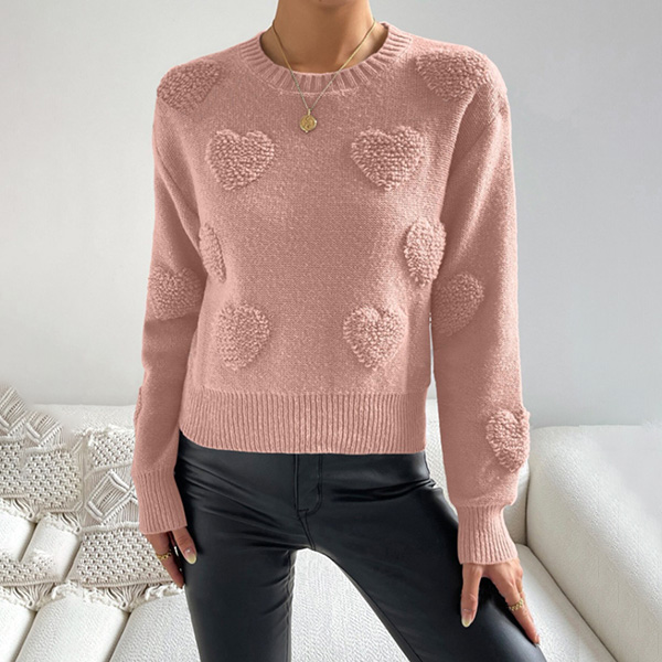 Fashion Crew Neck Heart Pattern Long Sleeve Knitted Sweater