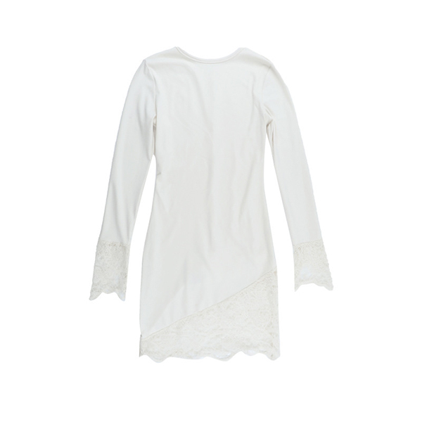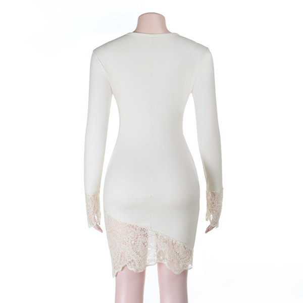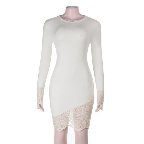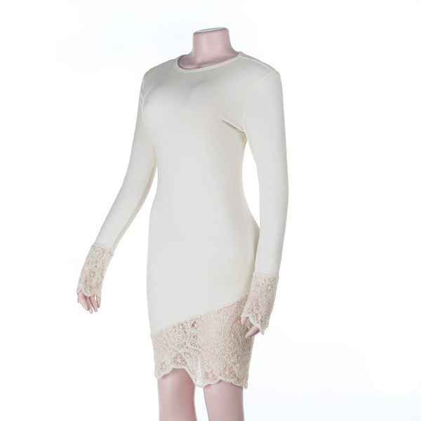 Fashion Crew Neck Lace Spliced Long Sleeve Bodycon Dress