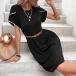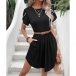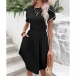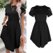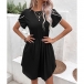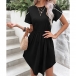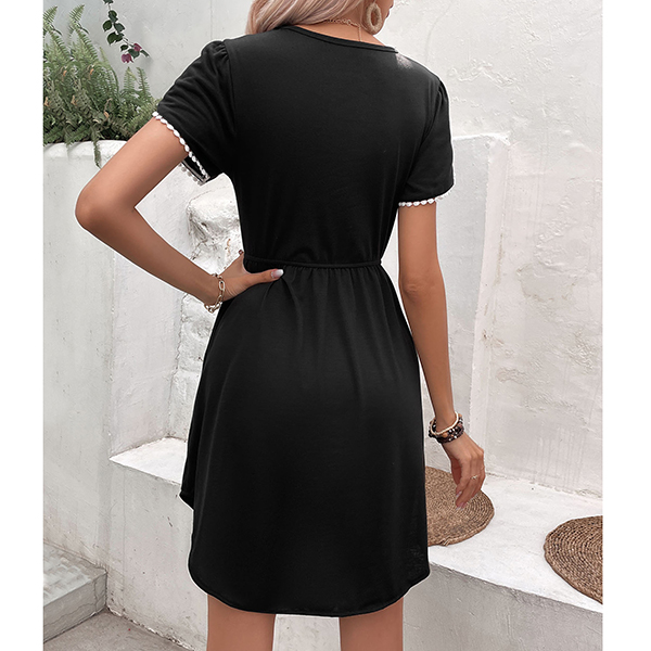 Fashion Crew Neck Lace Spliced Short Sleeve Irregular Hemline Mini Dress