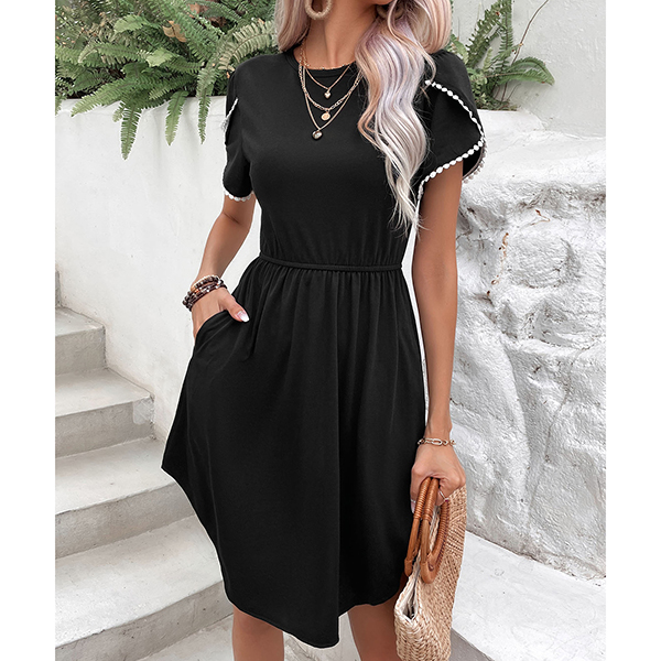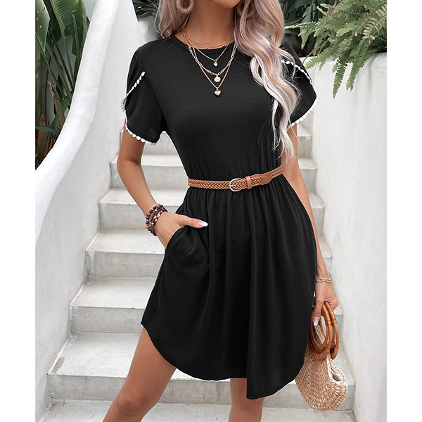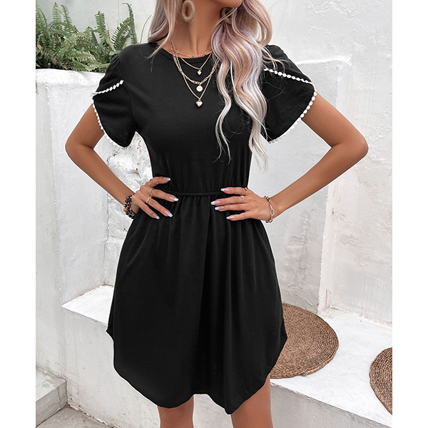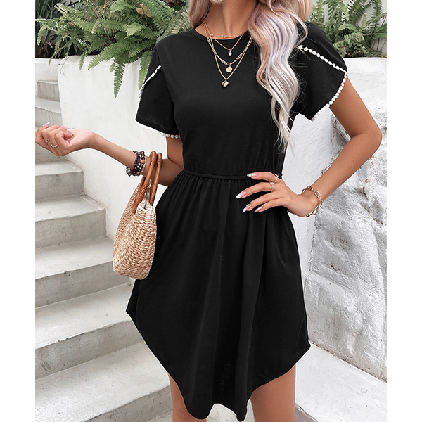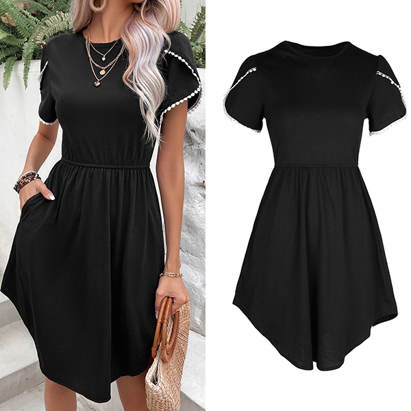 This Mini Dress is a beautiful and feminine piece that combines trendy elements with a touch of elegance. The lace splicing along the short sleeve adds a delicate and romantic touch to the dress, creating a whimsical and charming look. While the irregular hemline adds a unique and stylish touch, creating movement and visual interest to the dress. Perfet for daily wear.