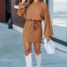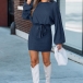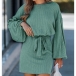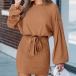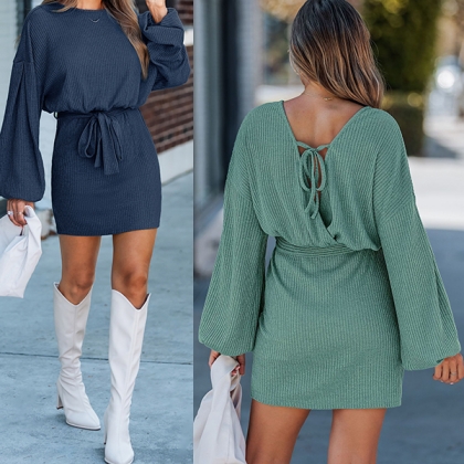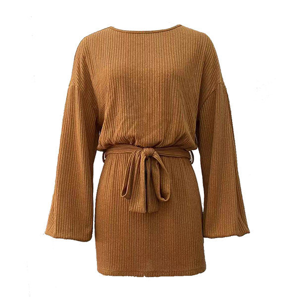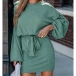Fashion Crew Neck Laterm Long Sleeve Self-tie Ribbed Dress