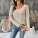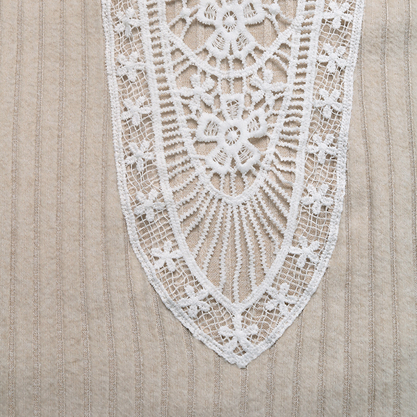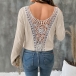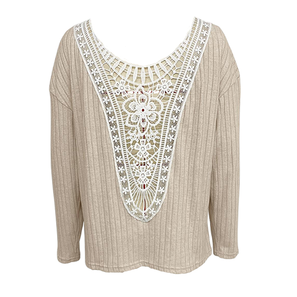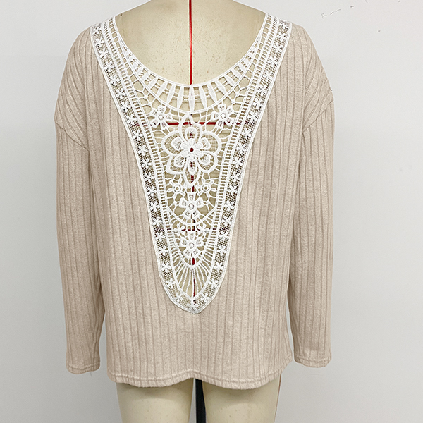 Fashion Crew Neck Long Sleeve Back Floral Jacquard Lace Spliced Ribbed Shirt