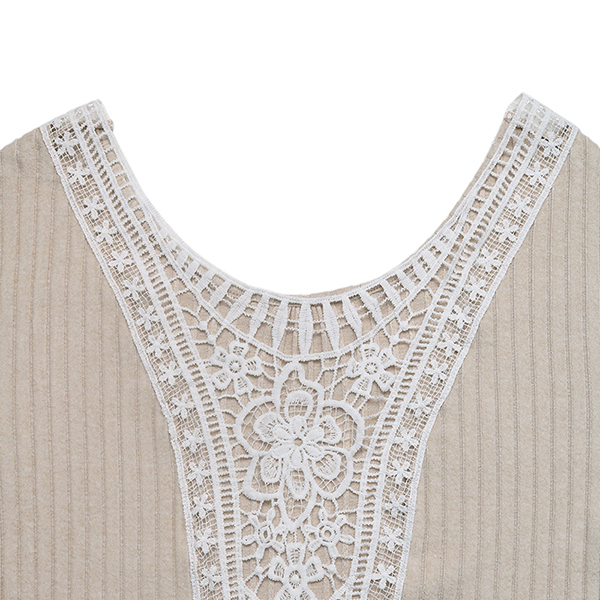 This ribbed Shirt feature backless with lace spliced details. The back floral jacquard lace splicing adds a romantic and feminine touch to the shirt, creating a delicate and intricate pattern that adds visual interest and texture to the garment. Pair it with tailored pants or a skirt for a chic and sophisticated look.